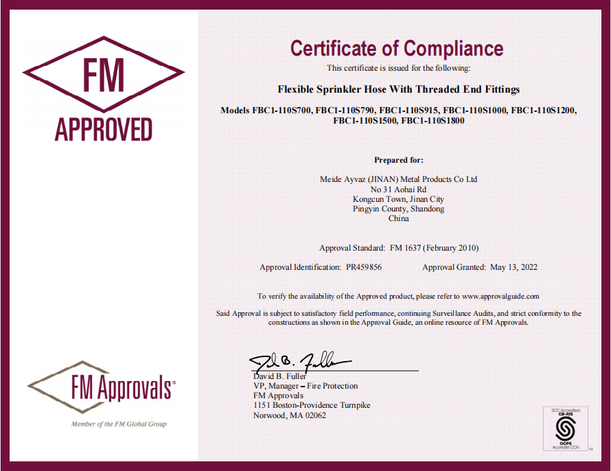 Meide FBC1-110S series flexible hose has obtained FM certificate!