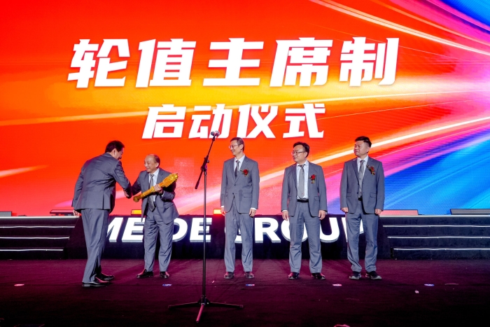 年會(huì)期間舉行了莊嚴(yán)的輪值主席交接儀式。在全體與會(huì)人員及全球分會(huì)場(chǎng)同仁的共同見(jiàn)證下,玫德集團(tuán)董事局當(dāng)值輪值主席李傳軍接過(guò)象征責(zé)任與使命的金色權(quán)杖正式履職。輪值主席制度是玫德現(xiàn)代治理體系的重要實(shí)踐,通過(guò)清晰的權(quán)責(zé)劃分、高效的協(xié)同配合,讓玫德運(yùn)營(yíng)更穩(wěn)健、決策更科學(xué)。