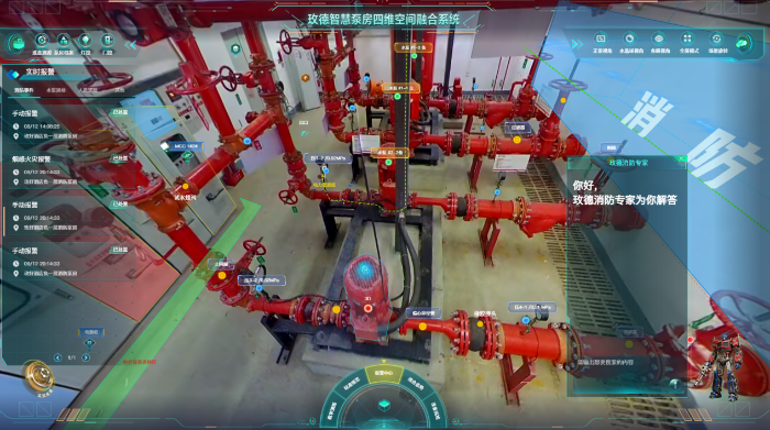 在此背景下,玫德集團依托其在管道閥門領域數十年的制造經驗與技術積累,以智慧泵房場景為切口,通過融合高斯建模、AI多模態解析、720°全景成像、AR增強現實與智能化技術,創新打造了智慧消防水滅火系統。該系統通過對消防水系統進行全時態、全要素的數字化監控與智能調控,實現了從水源、泵房、管網到末端裝置的全程可視化、故障預警自動化與運維管理協同化,徹底解決了傳統消防水系統“看不見、管不住、調不準”的痛點,為現代城市與工業安全構建了可靠、高效、智慧的消防水系統保障。